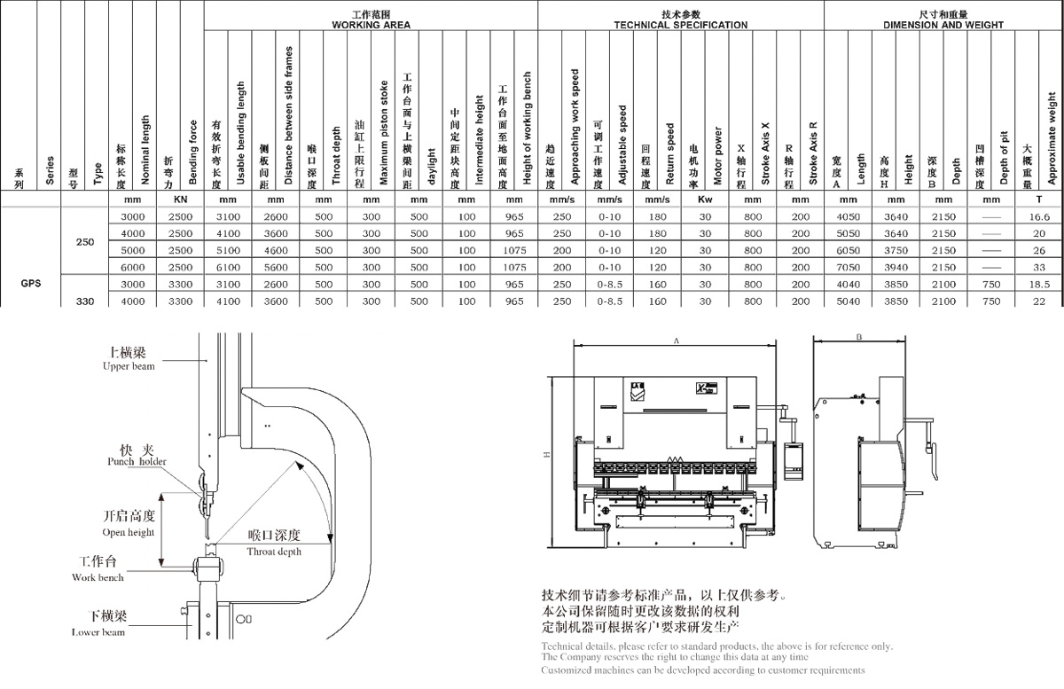 根據您所需折彎產品的零件圖及常用的板料厚度的情況,LAG的工程師會根據折彎機的開口高度及折彎力為您介紹
